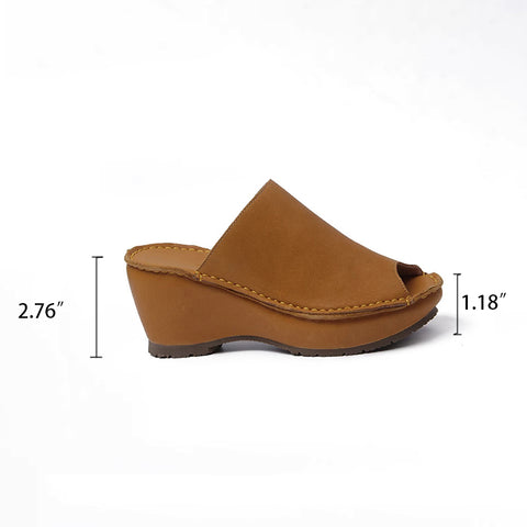レディース レザーサンダル ピープトゥ プラットフォーム スリングバック ウェッジ ブラック/イエロー/グリーン/グレー