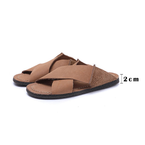 ハンドメイド牛革サンダル ソフトレザー 快適なカジュアルスリッパ コーヒー/アプリコット
