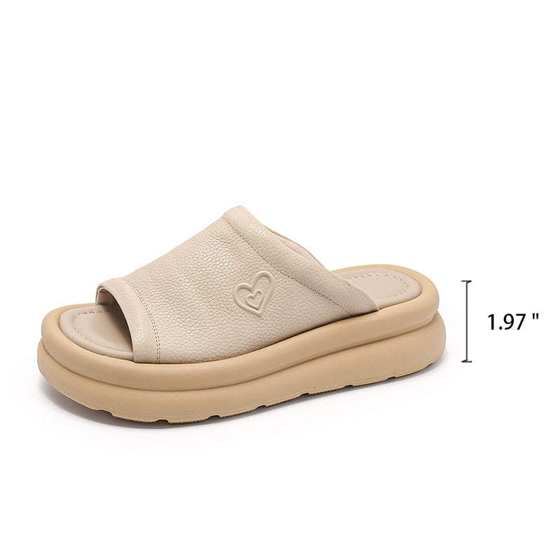 ハンドメイドレザープラットフォームフットベッドスリッパオープントゥブラック/オフホワイト/ブラウン