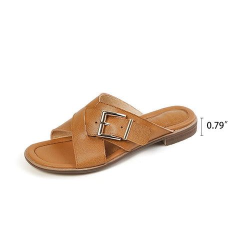 ハンドメイドレザーサマースリッパ アプリコットブラウン/オフホワイト