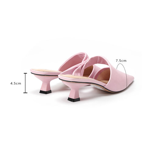 レザーミッドヒールミュール 夏用スリッパ ハンドメイド エレガントパンプス ピンク/ブラック/ホワイト/イエロー