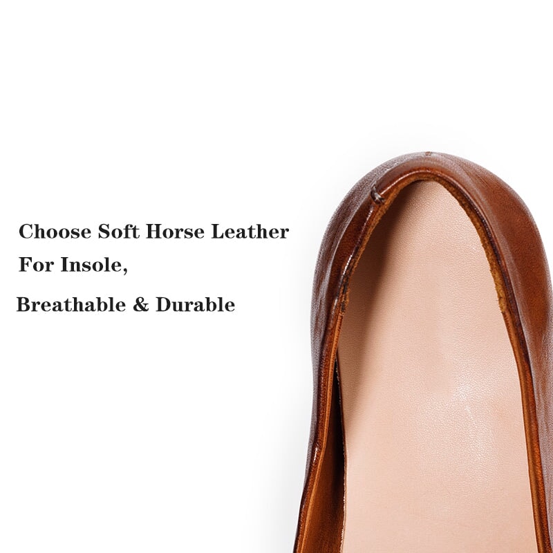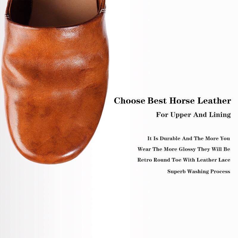 Step into effortless comfort and timeless style with these handcrafted women’s loafers. Featuring a soft round toe and a low block heel, these slip-on shoes are perfect for everyday wear. Made from premium washed horse leather, they offer a naturally distressed look and a breathable, supple feel. The cow leather outsole ensures durability and grip, while the casual design makes them ideal for work, travel, or relaxed weekends. A must-have for those who value comfort and character in their footwear.