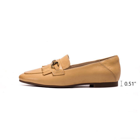 クラシックなタッセルディテール、ホースビット付きレザーローファー、レディース、レイジーフィーリング、イエロー/ベージュ/ブラック