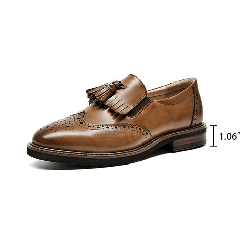 クラシックなタッセル装飾、絶妙なブローグ彫刻パターン、柔らかく快適な厳選された牛革。100%本革の裏地とインソールで、柔らかく、通気性と吸湿性に優れています。ラバーソールは快適で、歩行時の滑り止め効果があります。各靴は経験豊富な職人によって修理されています。