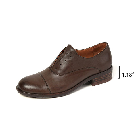 レトロレザーローファー レディース ラウンドトゥ コーヒー/ブラック