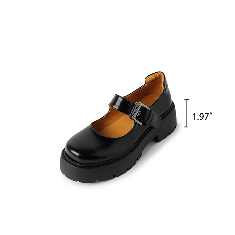 50mm レザー プラットフォーム メリージェーン シューズ ラウンド トゥ メタル バックル ブラック/ホワイト
