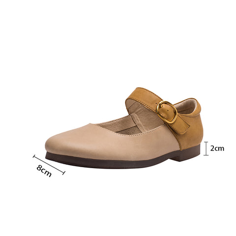 ハンドメイドレザーフラットメリージェーンシューズレディースラウンドトゥアプリコット/ピンク