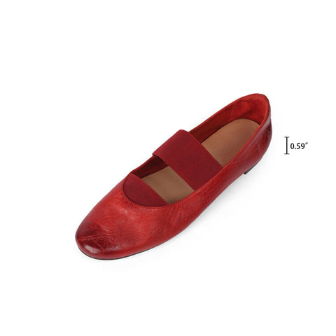 ハンドメイドレザーメリージェーンシューズ エラスティックバンド バレエフラット レッド/ブラック/ピンク/アプリコット