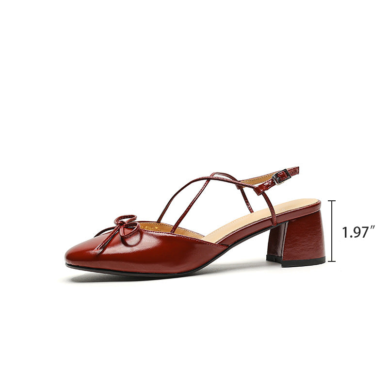 ハンドメイドレザーパンプス ミッドヒール×ストラップ メリージェーンサンダル レッド/シルバー/ベージュ