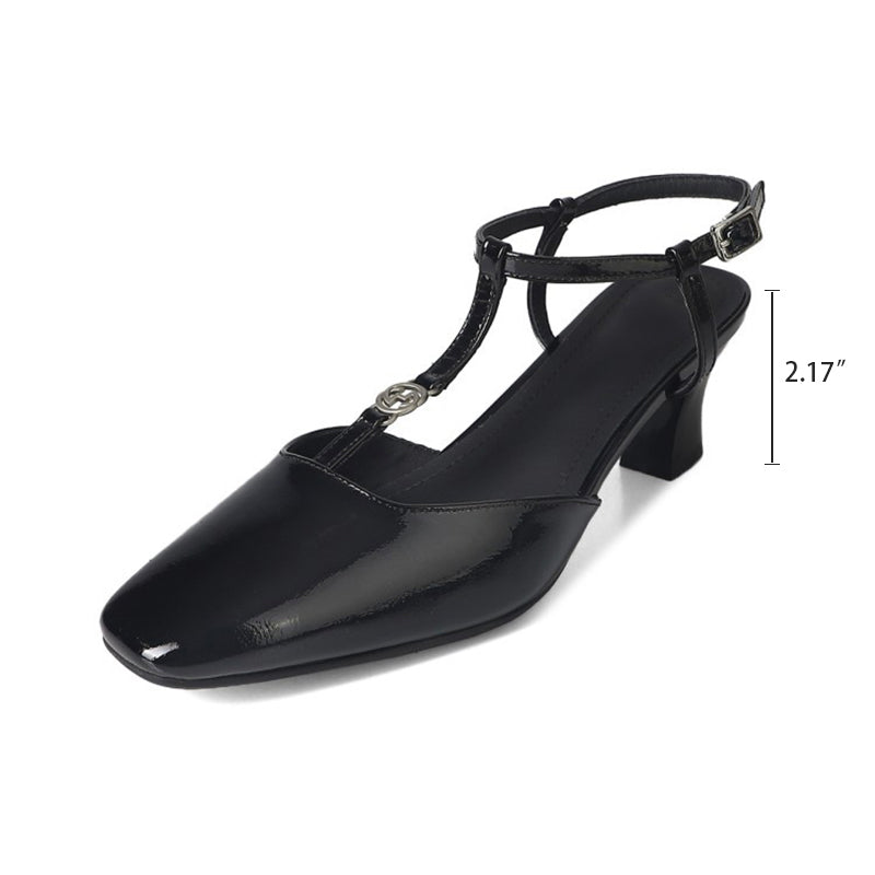 Leather T-strap Block Heel Mary Jane Shoes For Summer Slingback in Silver/Black/Blue