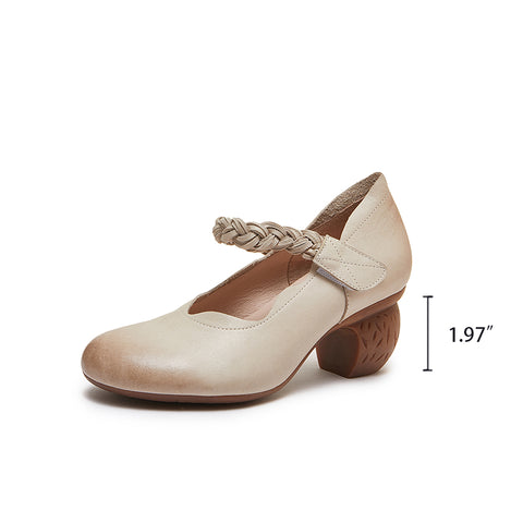 森ガール ハンドメイド ストラップ レザー パンプス レトロ メリージェーンヒール ベージュ/コーヒー