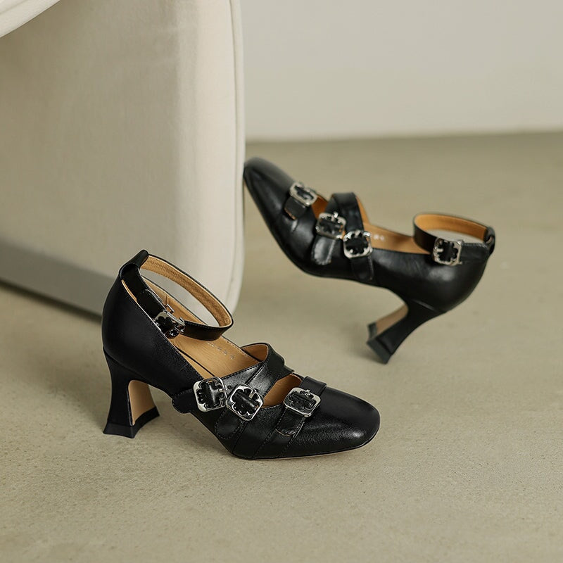 ハンドメイドレザーメリージェーンシューズ クロスストラップバレエフラット レッド/ブラック/ピンク/アプリコット