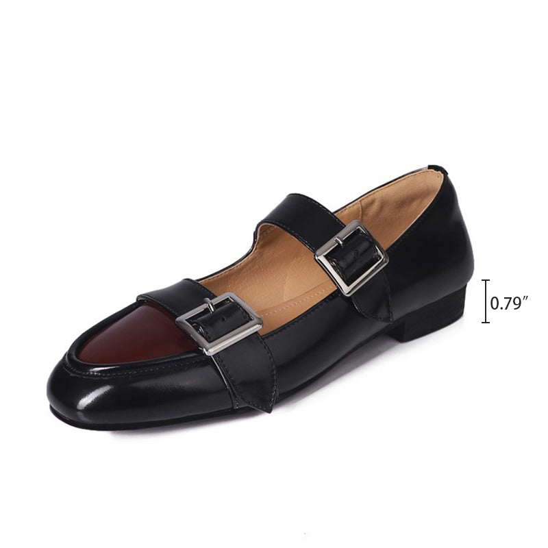 レディース ハンドメイド レザー フラット メリージェーン シューズ ホワイト/ブラウン
