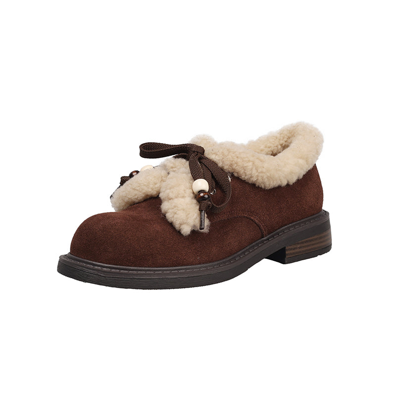 Made from premium cow suede leather, they feature a soft shaggy look and a low heel silhouette that’s perfect for daily wear. The faux long plush lining and plush insole keep your feet warm and cushioned, while the TPR outsole provides flexibility and reliable grip. Easy to pair with jeans, skirts, or casual outfits, these casual winter Oxford shoes are a go-to choice for relaxed, stylish comfort.