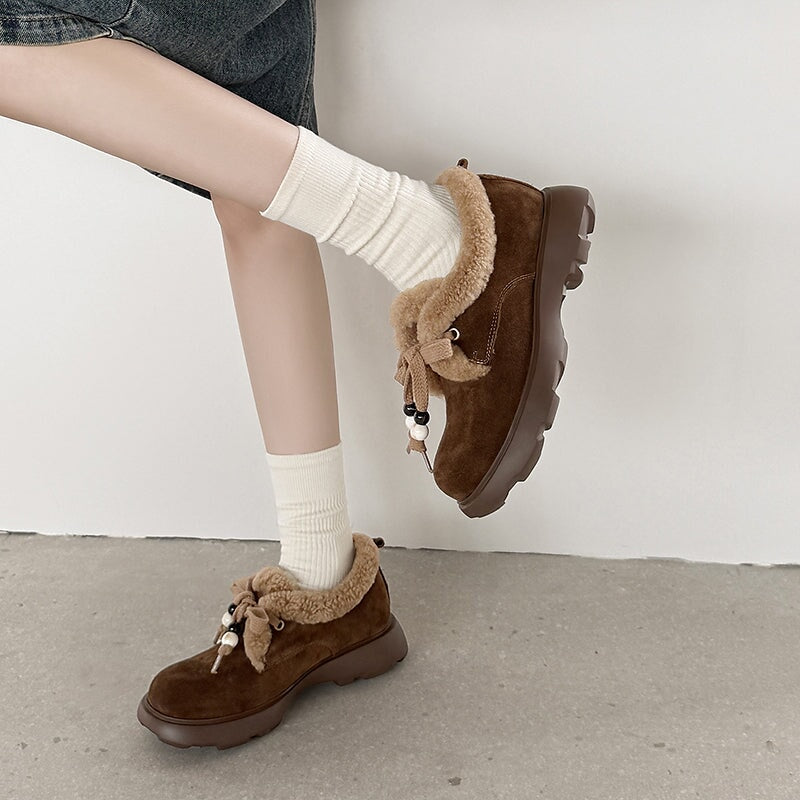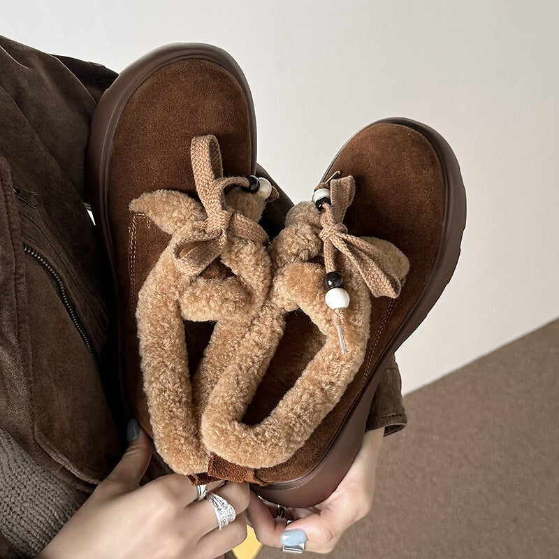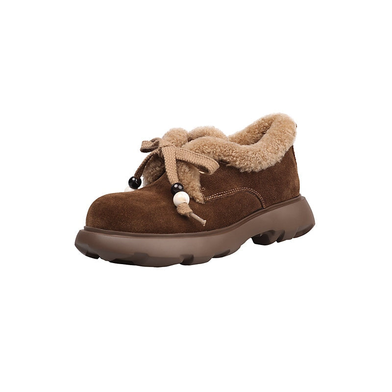 レトロな本革製ソフトフラットブーツ、女性用、ラウンドトゥ、森ガールスタイル、ブラウン/コーヒー