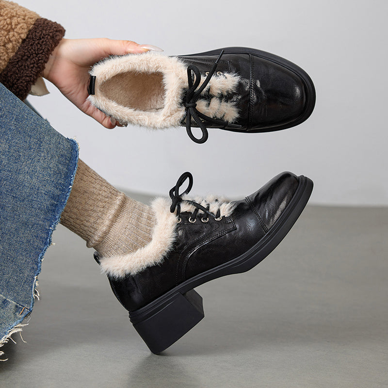Crafted from premium top-layer sheepskin leather, these oxford shoes upper offers durability, softness, and a refined winter look. Designed for cold weather comfort, the shoes are fully lined with short plush and finished with a short plush insole to provide warmth and cushioning throughout the day. The TPR outsole delivers reliable grip and flexibility, making these block heel Oxford shoes ideal for casual winter outfits, daily commuting, and seasonal styling.