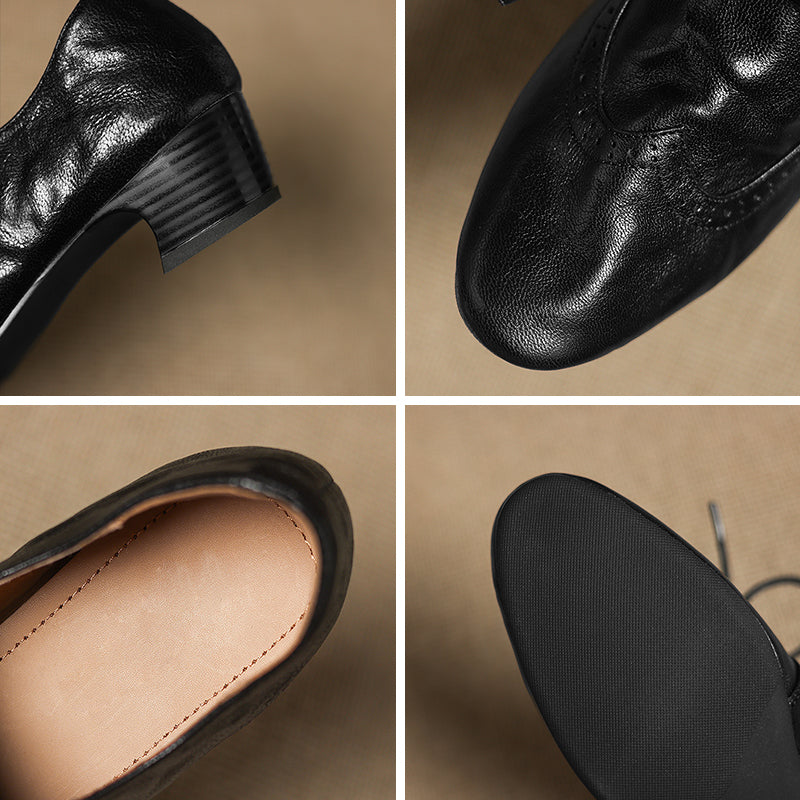 ラウンドトゥ 50mm ブロックヒール レザー ペニーローファー レディース ブラウン/ブラック