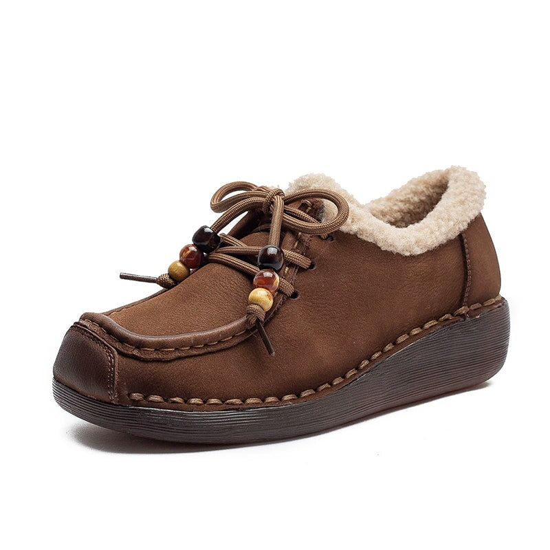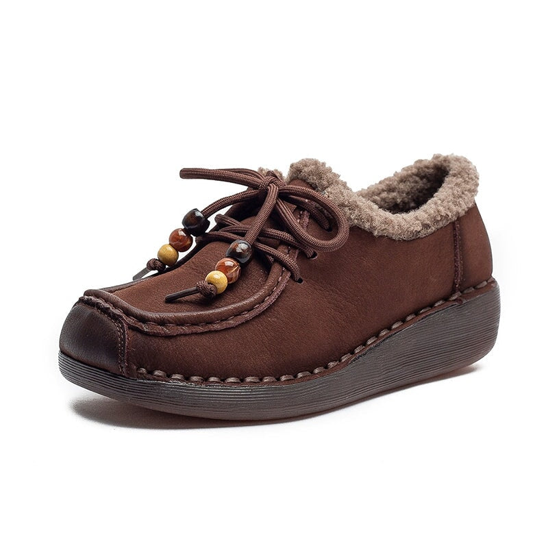 レースアップデザイン、レトロな色。柔らかいレザーを手作りし、エレガントで足を解放します。本革と軽量ラバーソールで作られています。