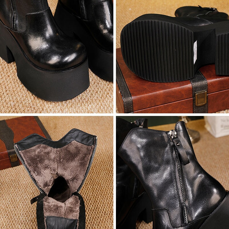 バックジップのレトロスタイルのラウンドトゥのチャンキーなデザイン。ほとんどの足の形にフィット。厳選された牛革は柔らかく、快適で、摩耗や裂傷に耐えます。ラバーソールは高弾性、ソフト、滑り止め、耐摩耗性があります。ちょうど良いヒールで、快適で、足を長く見せます。