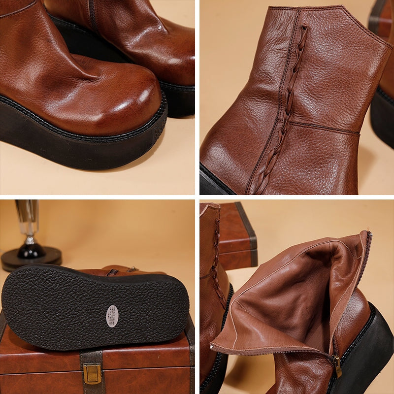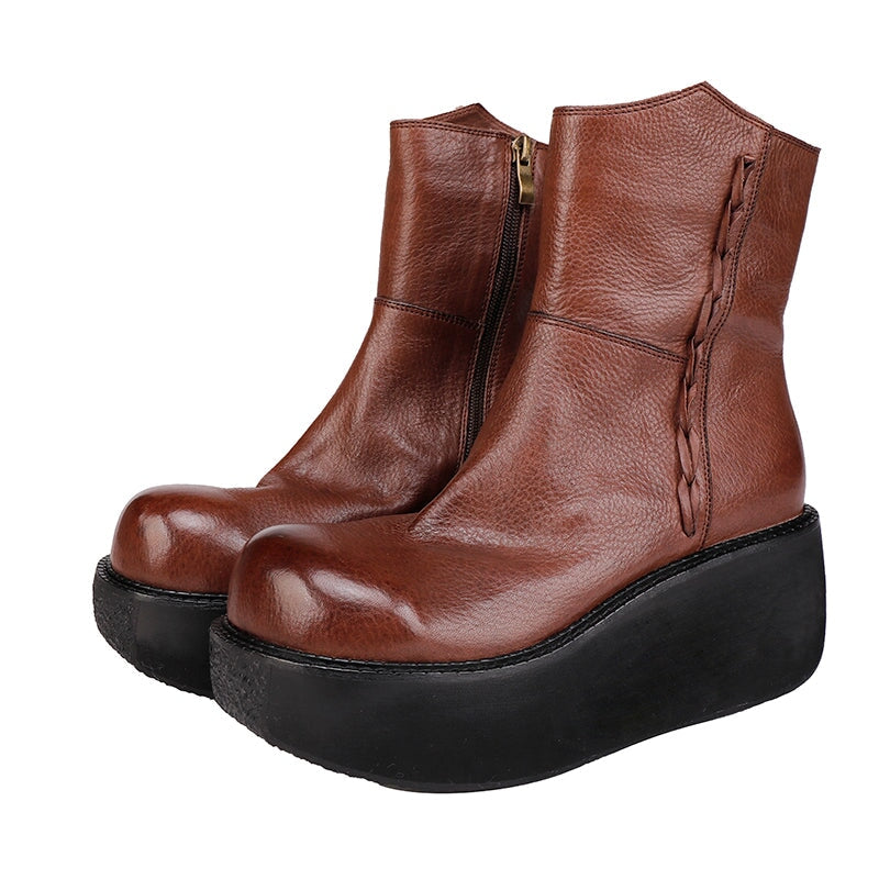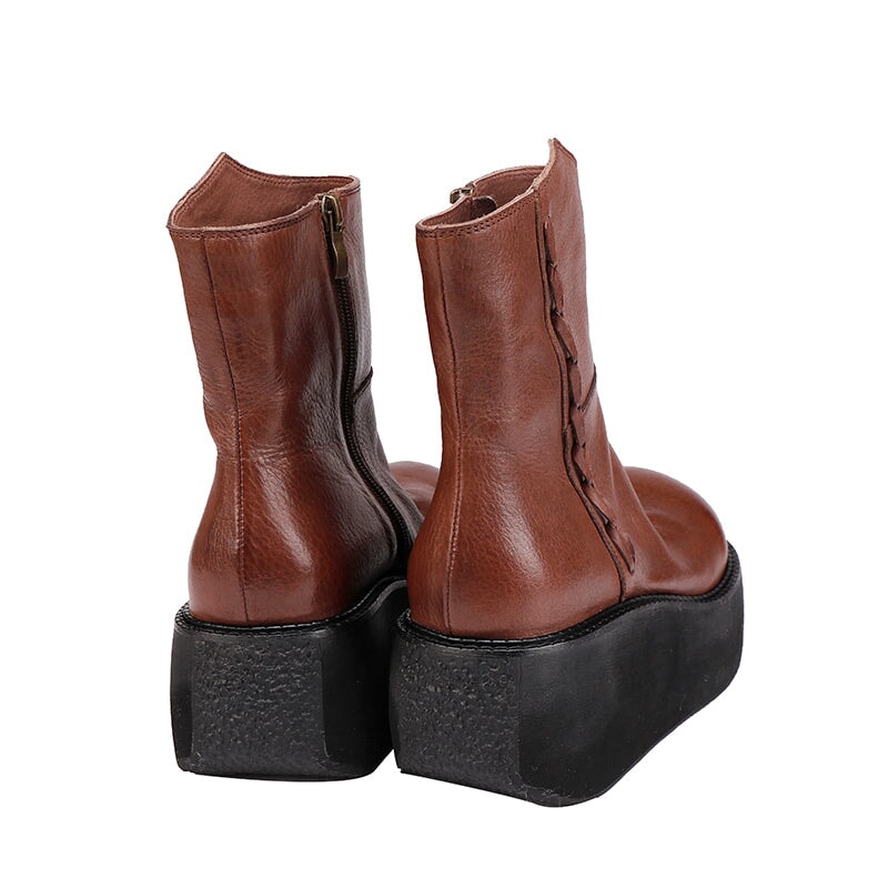 レディース用レトロブーツ レザープラットフォームブーツ ブラック