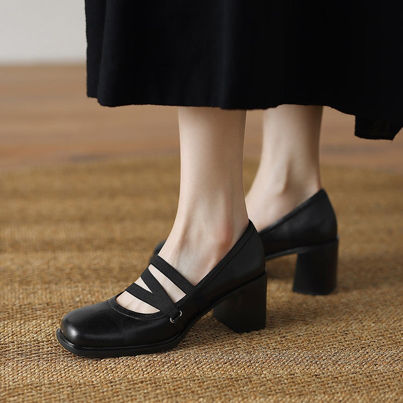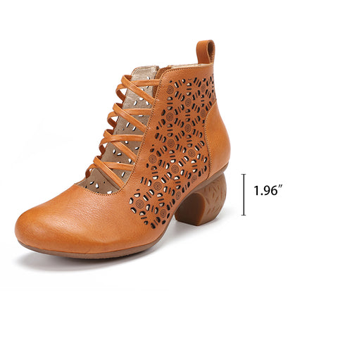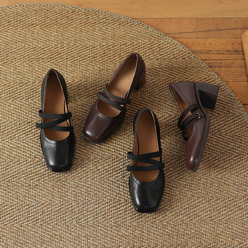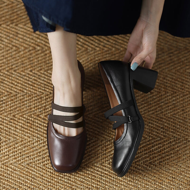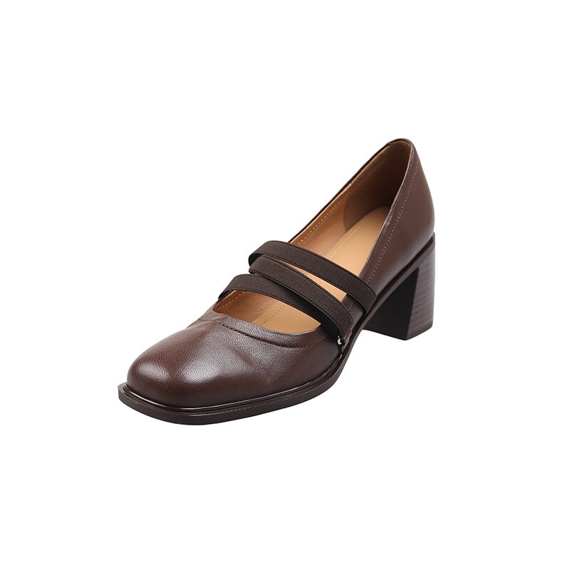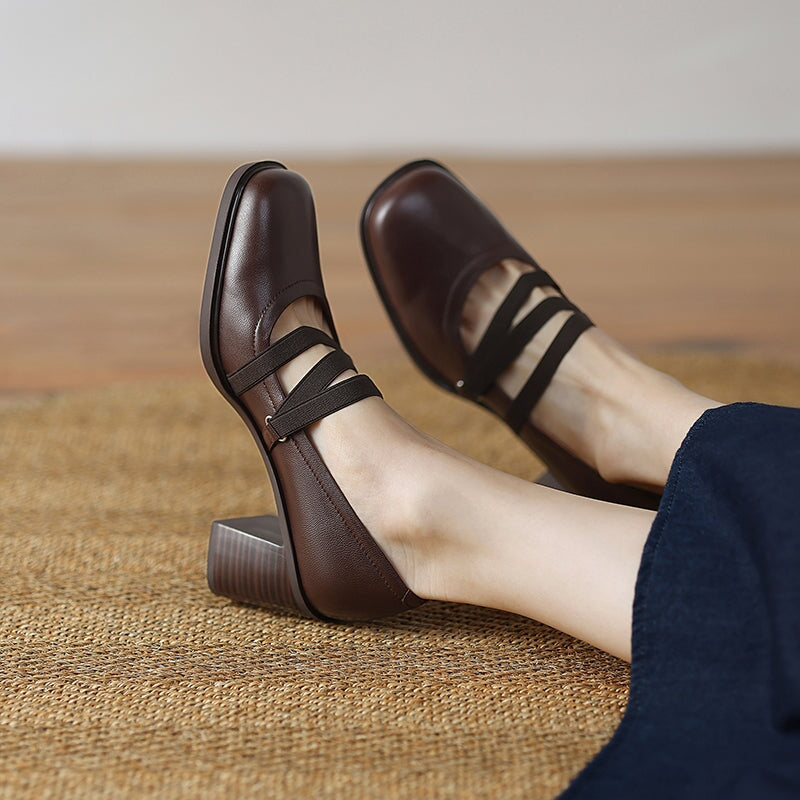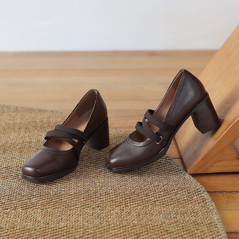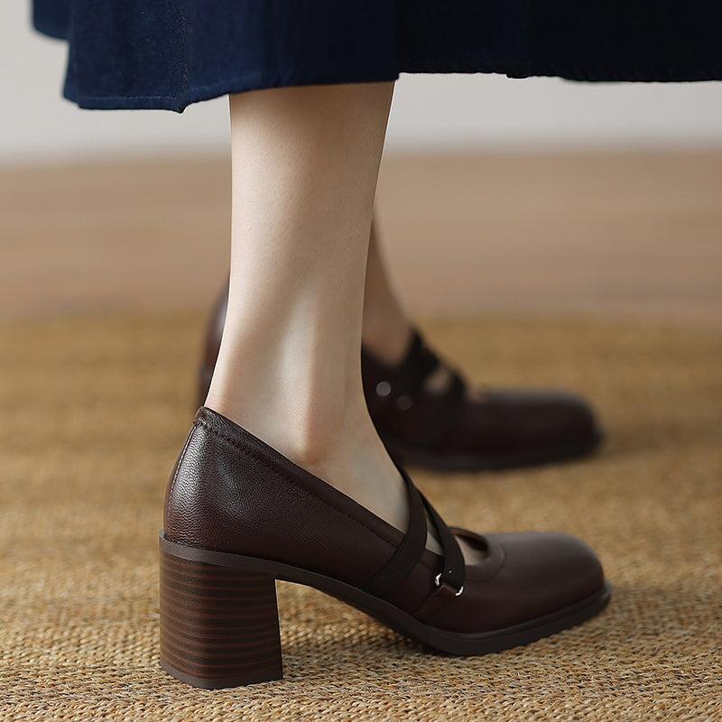 ハンドメイド本革パンプス レトロ ラウンドトゥ レディース アンクルブーツ ブロックヒール サイドジッパー コーヒー/ブラウン