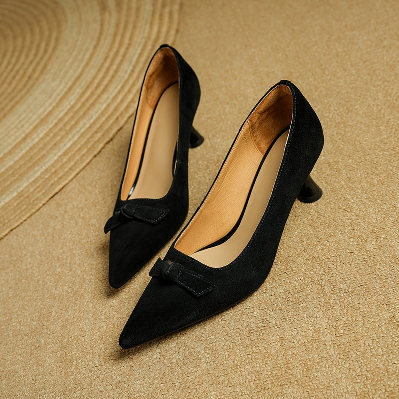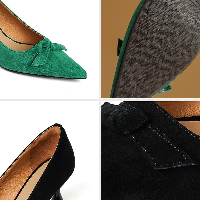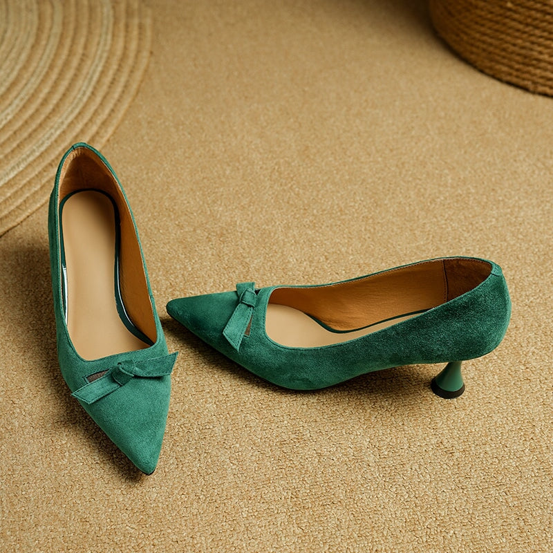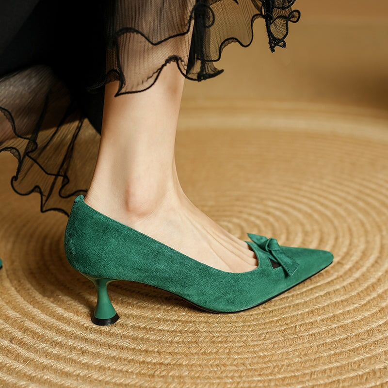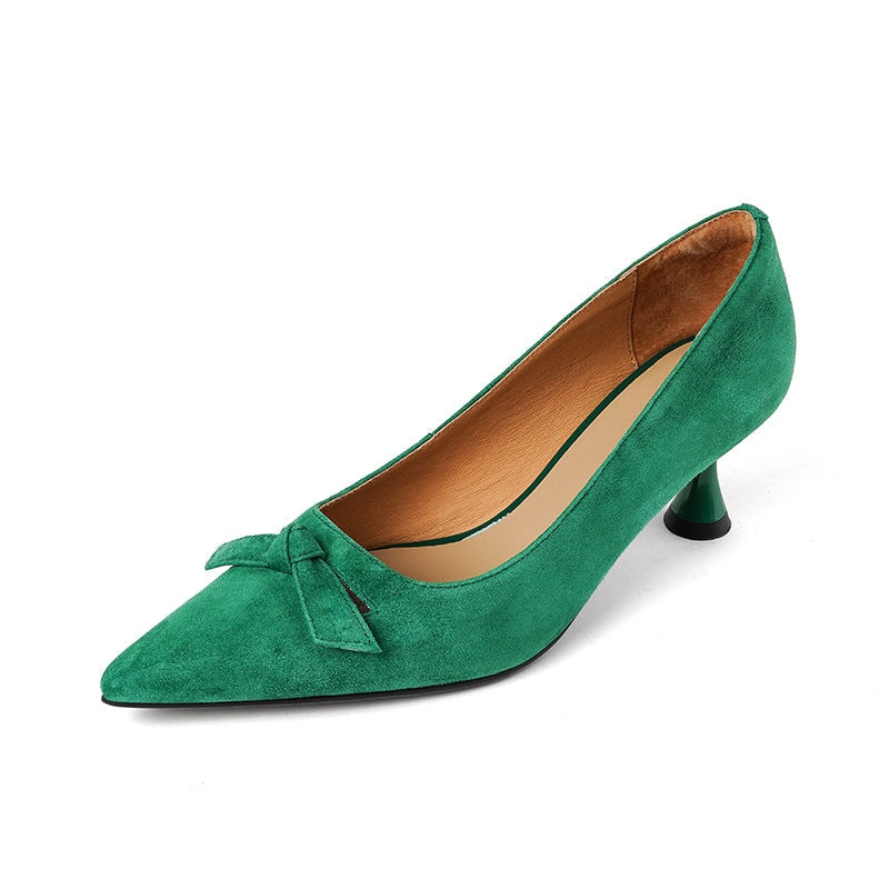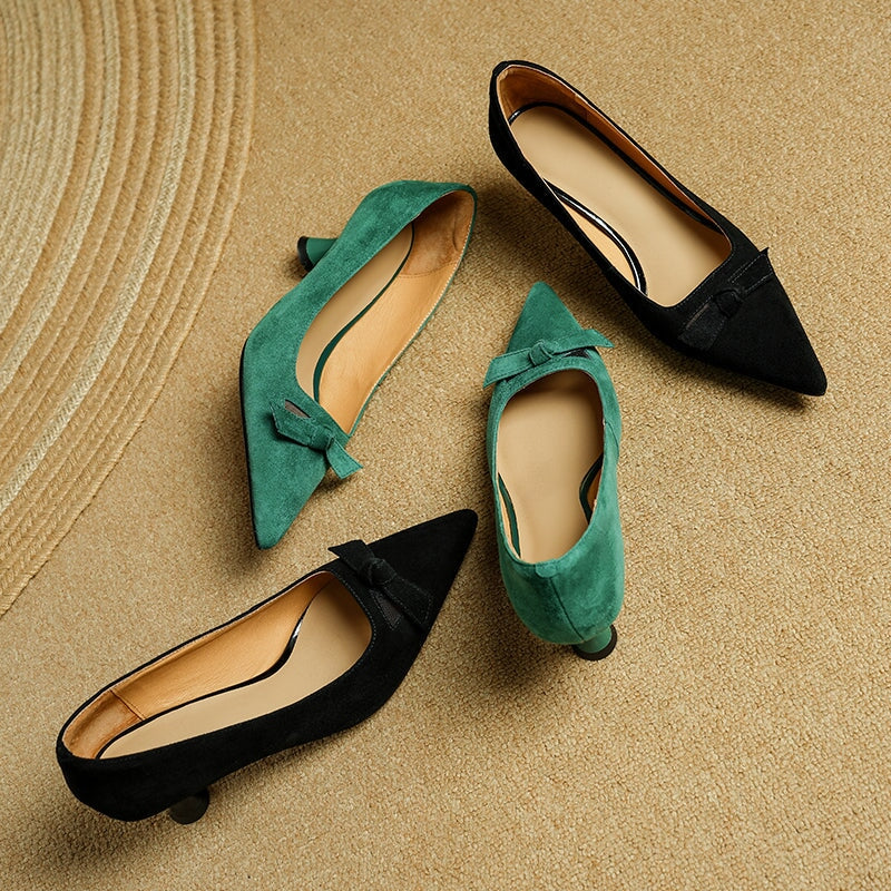 ハンドメイドレザーパンプス キトンヒール ポインテッドトゥ レッド/コーヒー