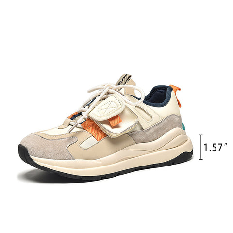 レザーの継ぎ合わせアッパー、オーガニックなメッシュ裏地、パーソナライズされた小さなポケットデザイン。底が柔らかく、軽くて歩きやすい。