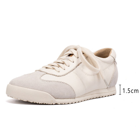 ハンドメイドのソフトレザーの白い女性用シューズ、レースアップスニーカー、デザイナーシューズ、ブラック/ベージュ/ディープアプリコット