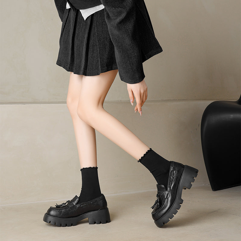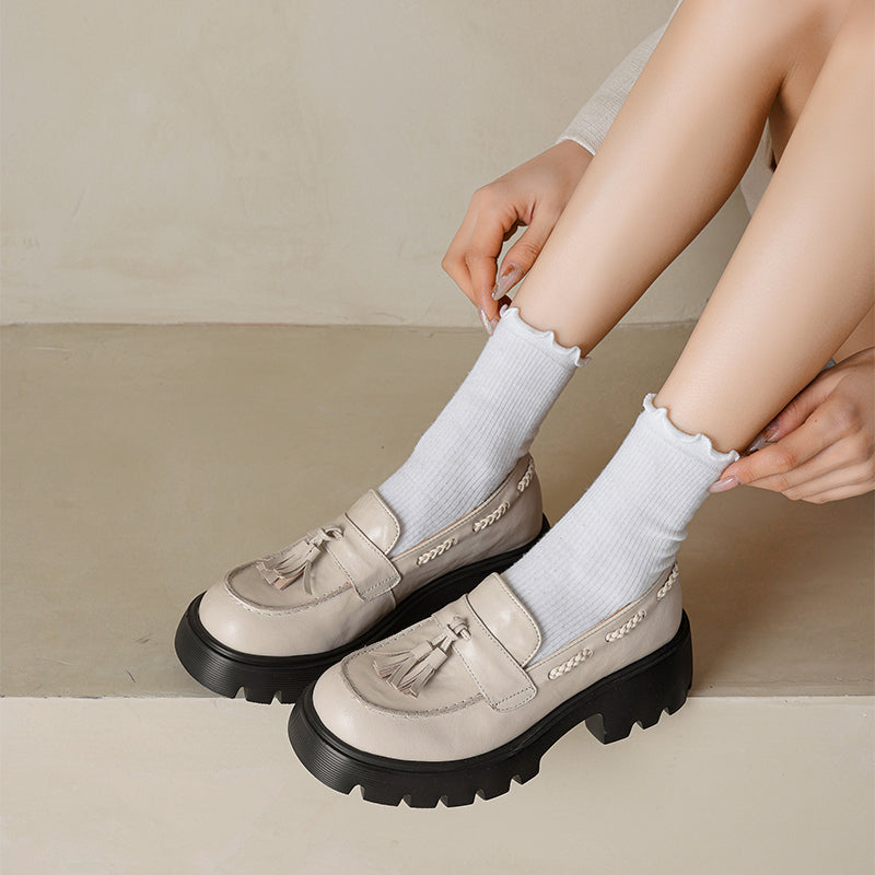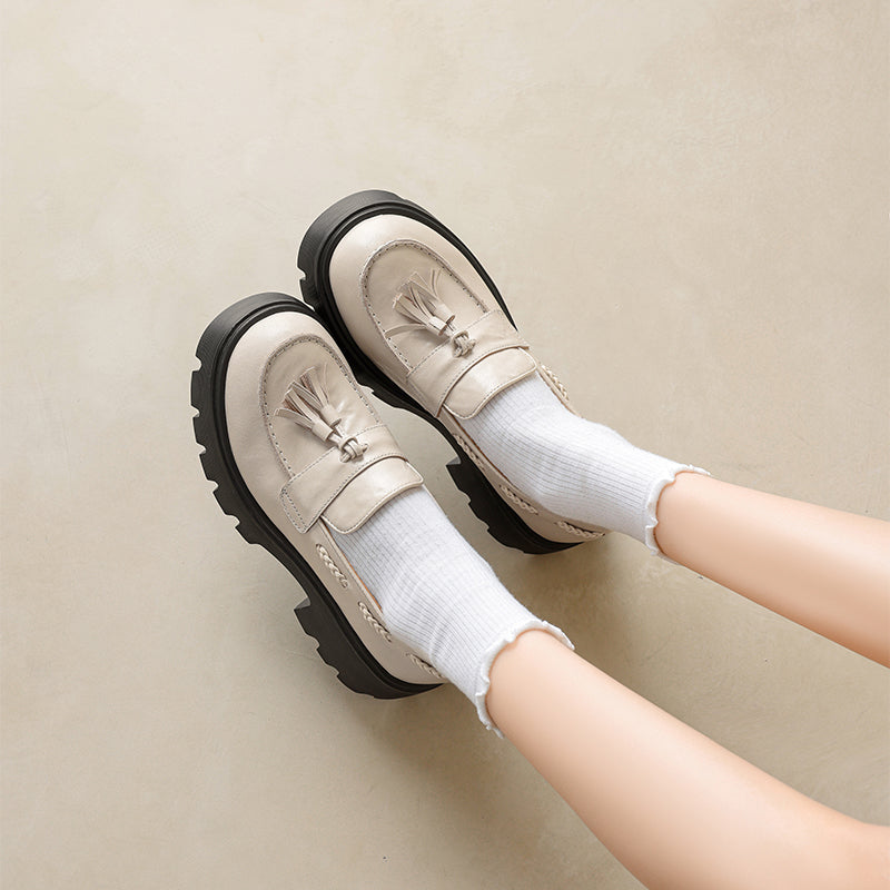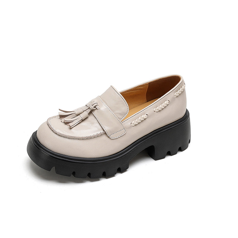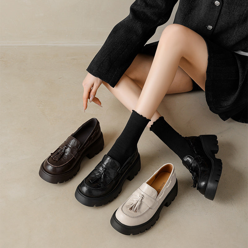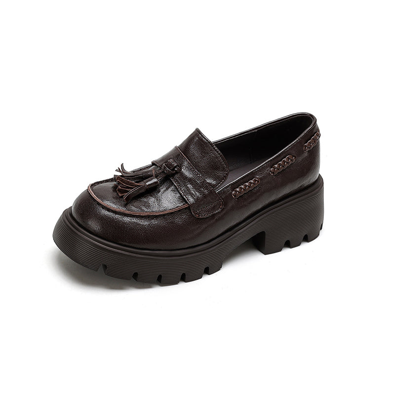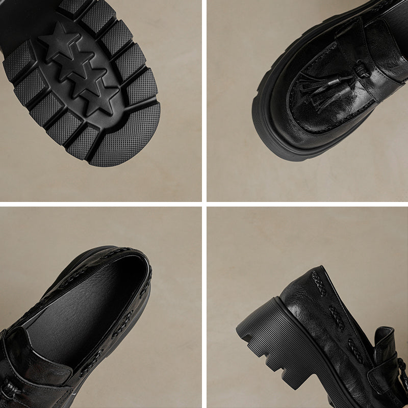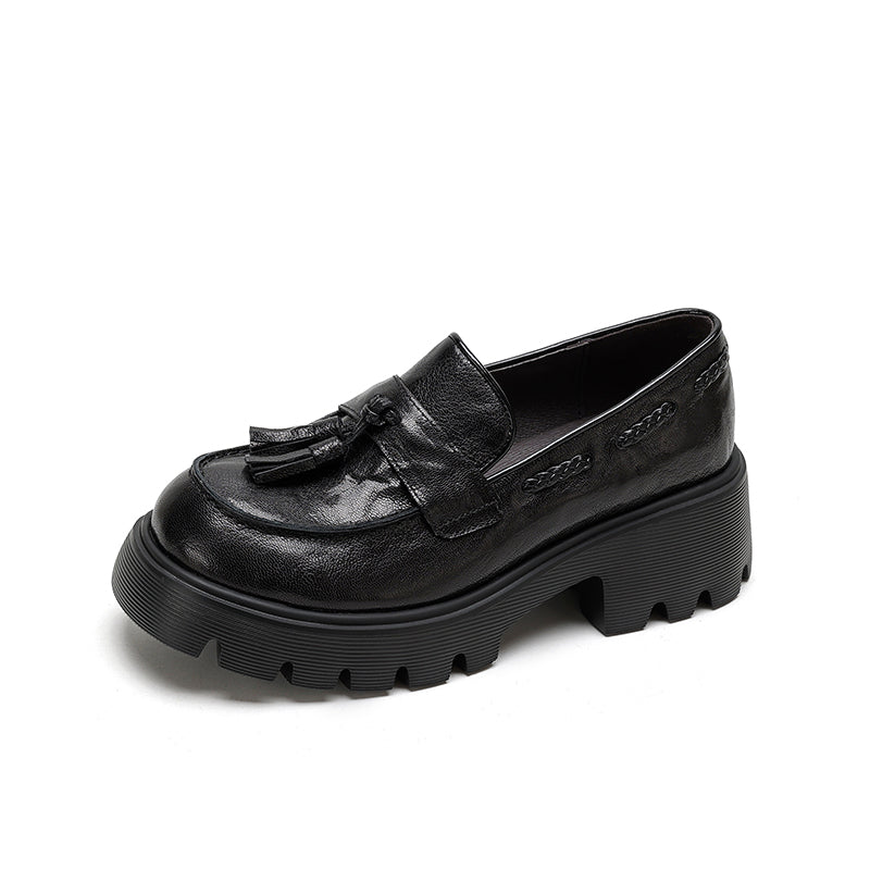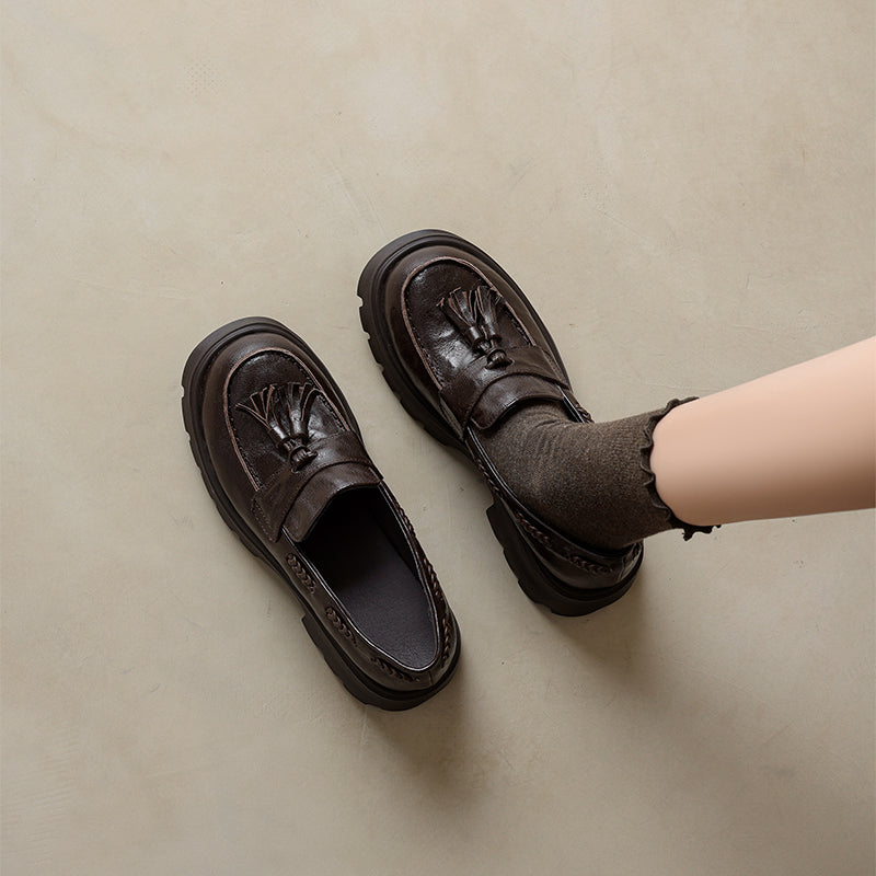 レディース用クラシックレザータッセルローファー ソフトチャンキースリッポン ブラック/グレー/ブラウン