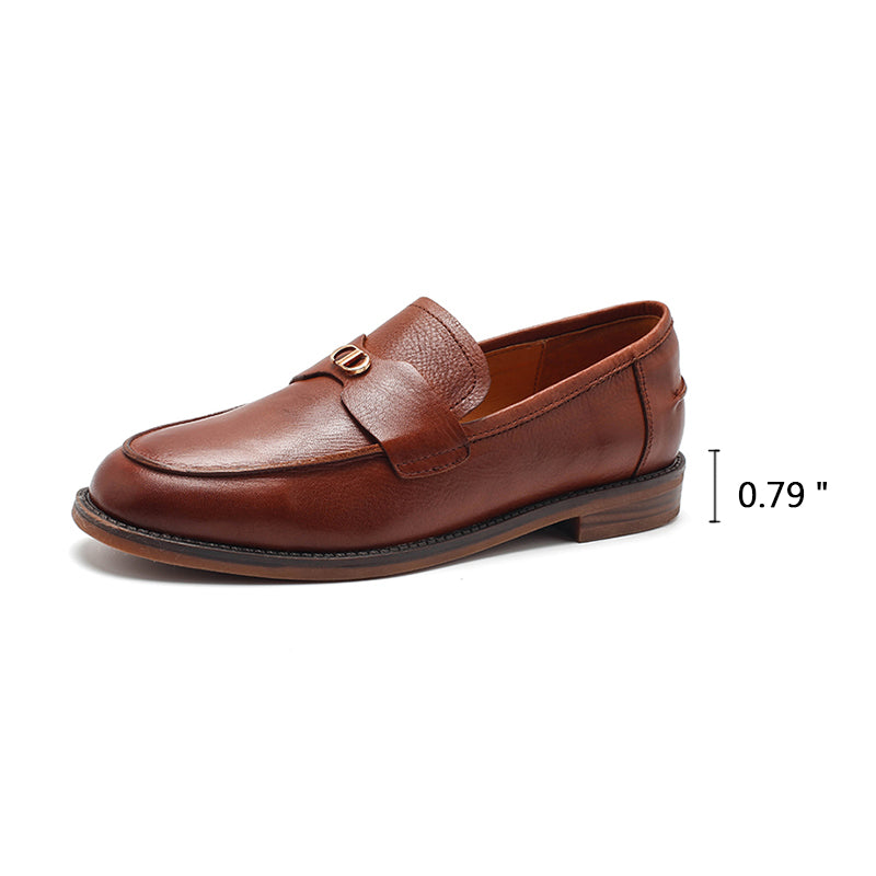 ドワーフ メタルディテール レザーローファー レディース ブラック/カーキ/ブラウン/アプリコット/ワインレッド