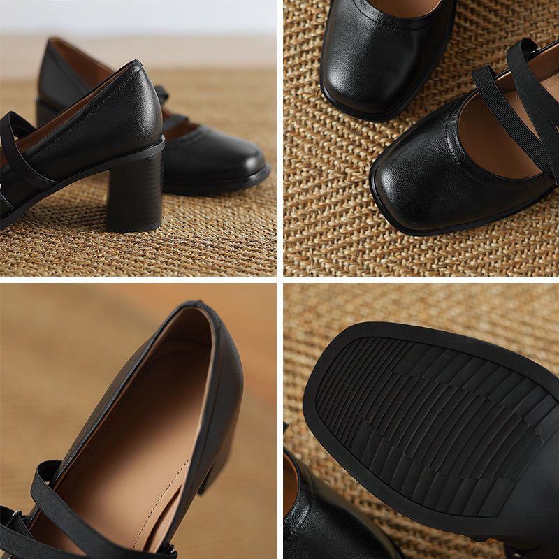 ハンドメイド本革パンプス レトロ ラウンドトゥ レディース アンクルブーツ ブロックヒール サイドジッパー コーヒー/ブラウン