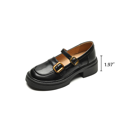 ハンドメイドレザープラットフォームメリージェーンシューズ ラウンドトゥ コーヒー/ブラック/カーキ