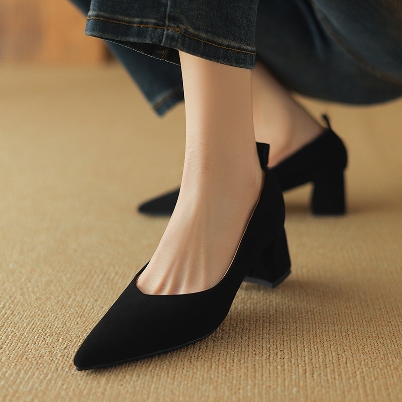 ハンドメイドの本革パンプス、レッド/ブラック/ヌードファッションスタイルブロックヒール