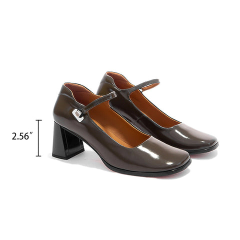 ハンドメイドレザーパンプス メリージェーンハイヒール スクエアトゥサンダル ブラック/コーヒー/カーキ