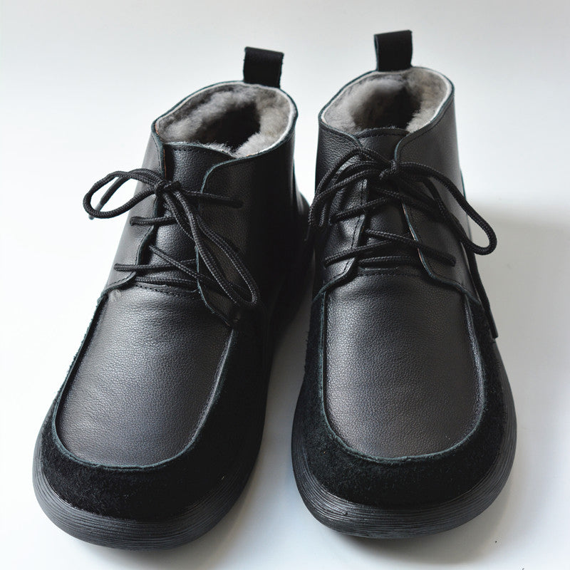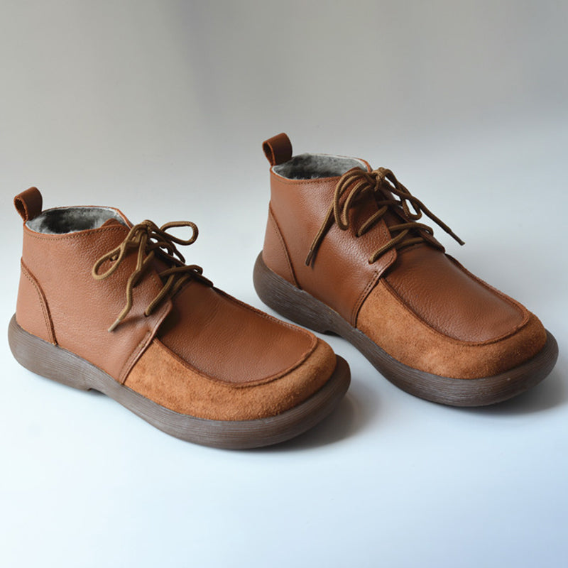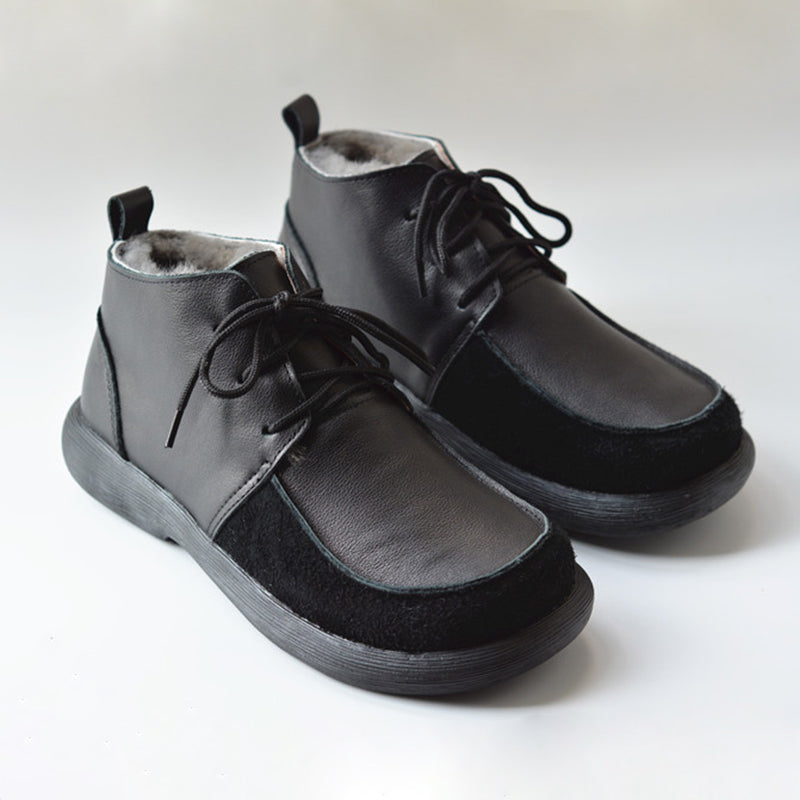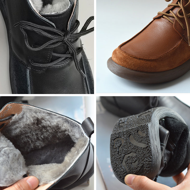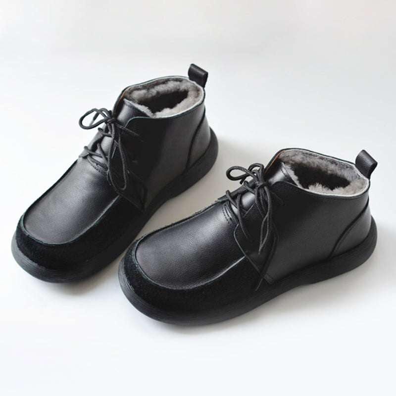 ソフトレザーウール裏地アンクルブーツ レトロ ラウンドトゥ ショートブーツ レディース 森ガールブーツ ハンドメイド