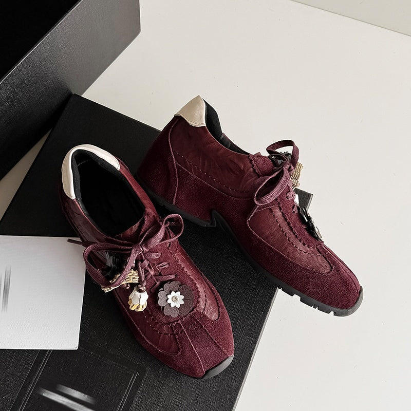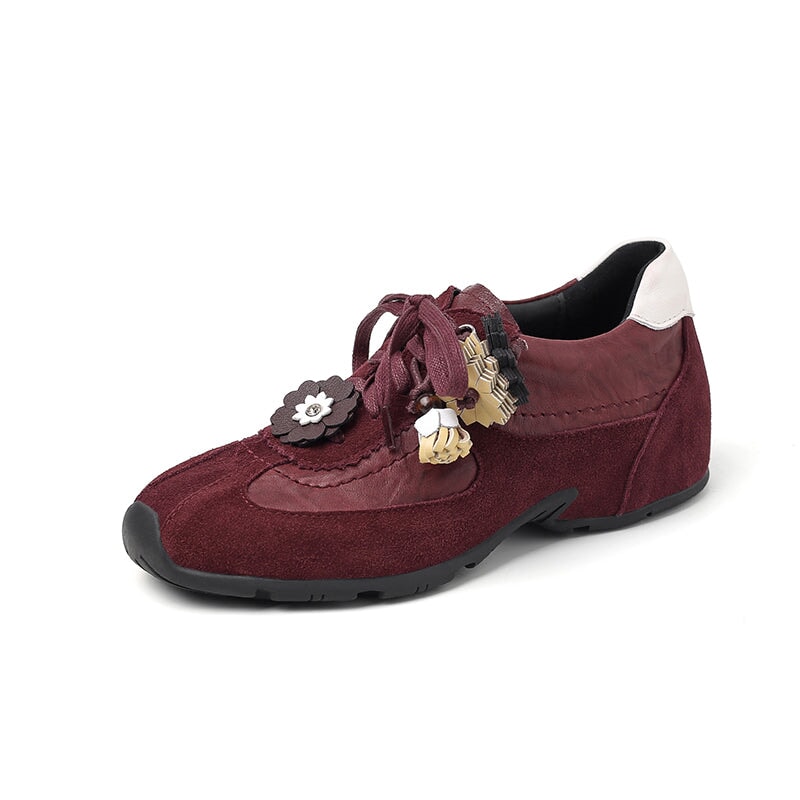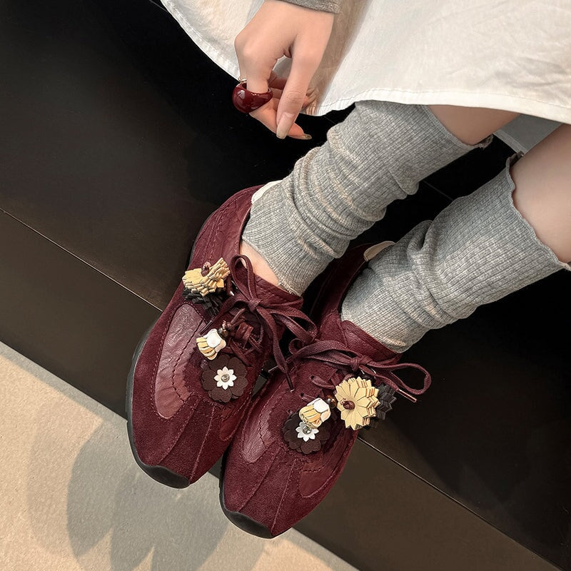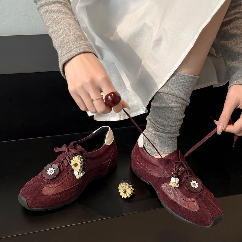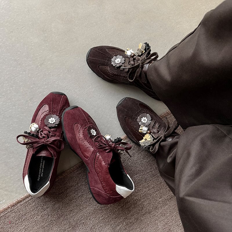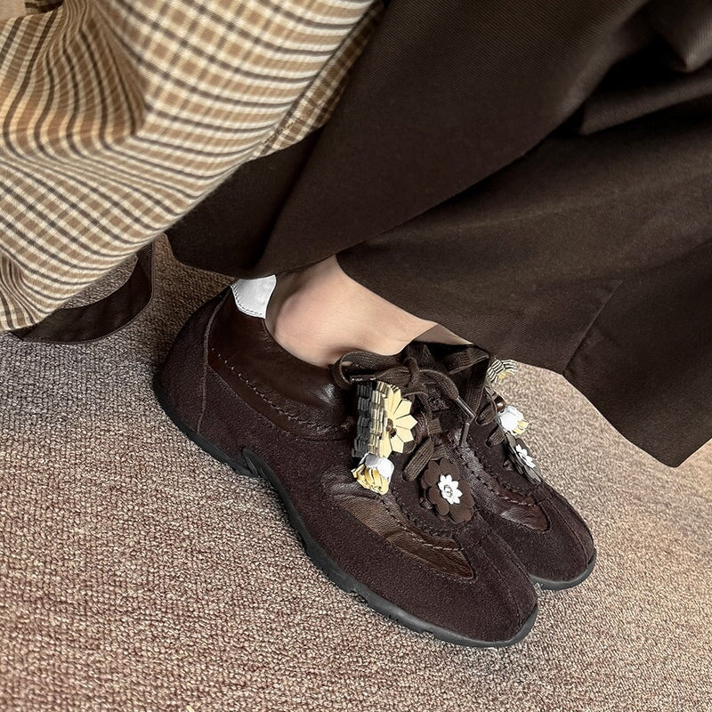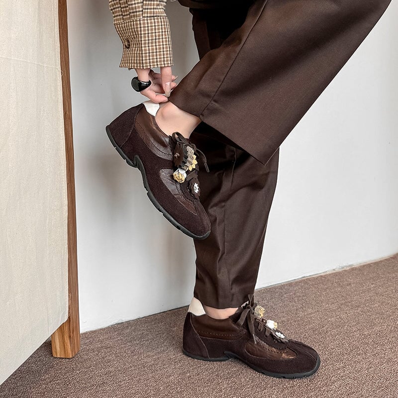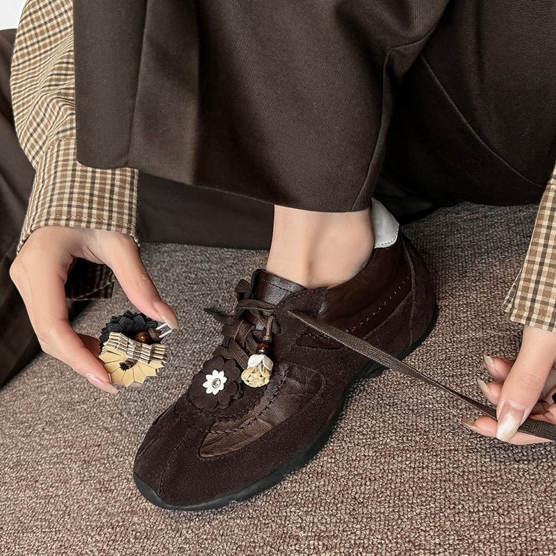 デザイナーシューズ ソフト レースアップ 本革 フラットシューズ レディース ハンドメイド ブラック/コーヒー