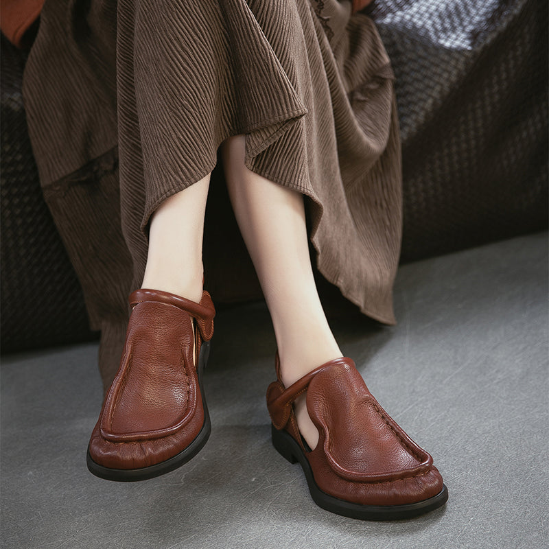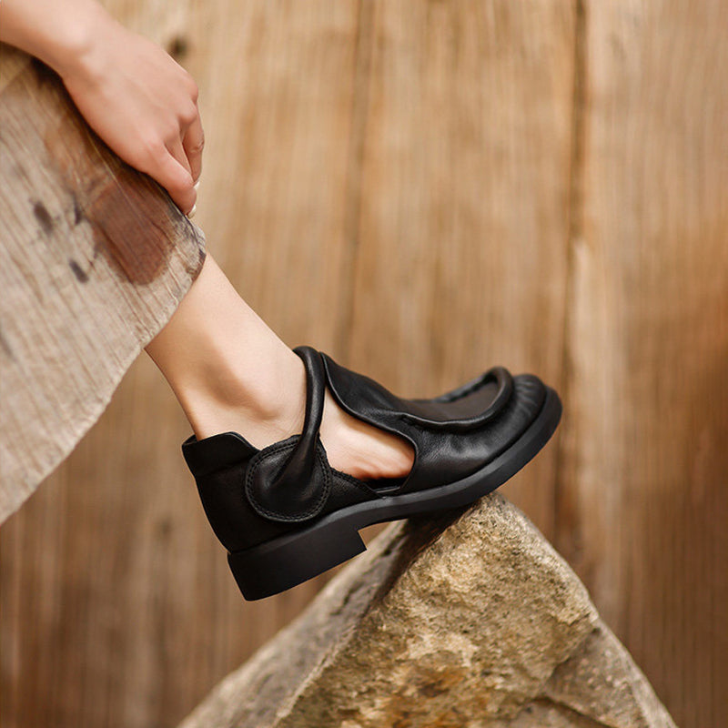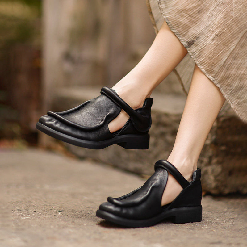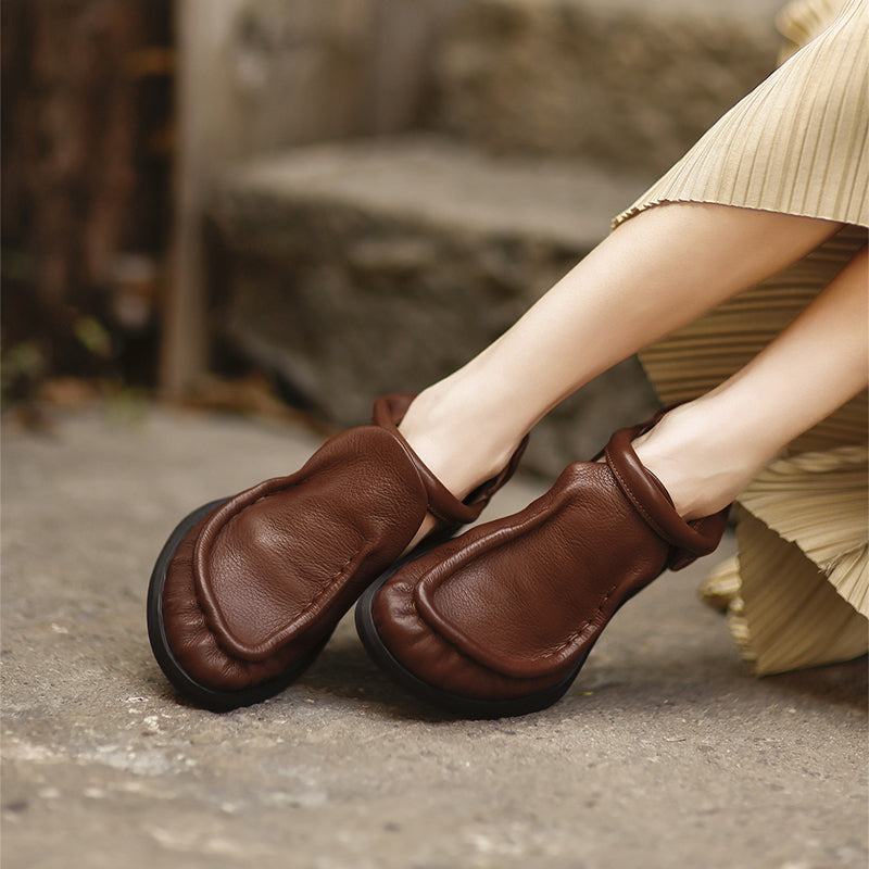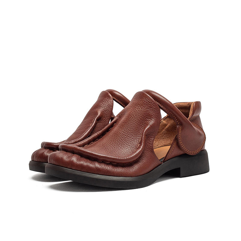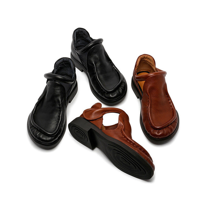 Classic retro Mary Jane shoes crafted from premium full grain leather for a soft, durable feel. Designed with a comfortable round toe and a sturdy block heel, these shoes offer everyday stability and effortless vintage charm. The convenient Velcro strap ensures easy wear and a secure fit, while the flexible rubber sole provides reliable traction. Perfect for casual wear, commuting, or adding a timeless retro touch to your wardrobe.