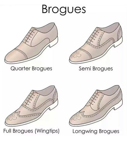 브로그는 독특한 천공과 윙팁 디자인으로 쉽게 알아볼 수 있습니다. 천공 또는 "브로깅"은 신발의 가장자리와 발가락 캡에서 찾을 수 있습니다. 'W' 형태라고도 불리는 윙팁 디자인은 신발 측면을 따라 브로그를 확장하여 만들어졌습니다.