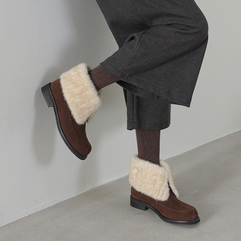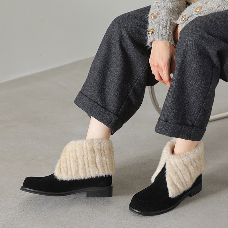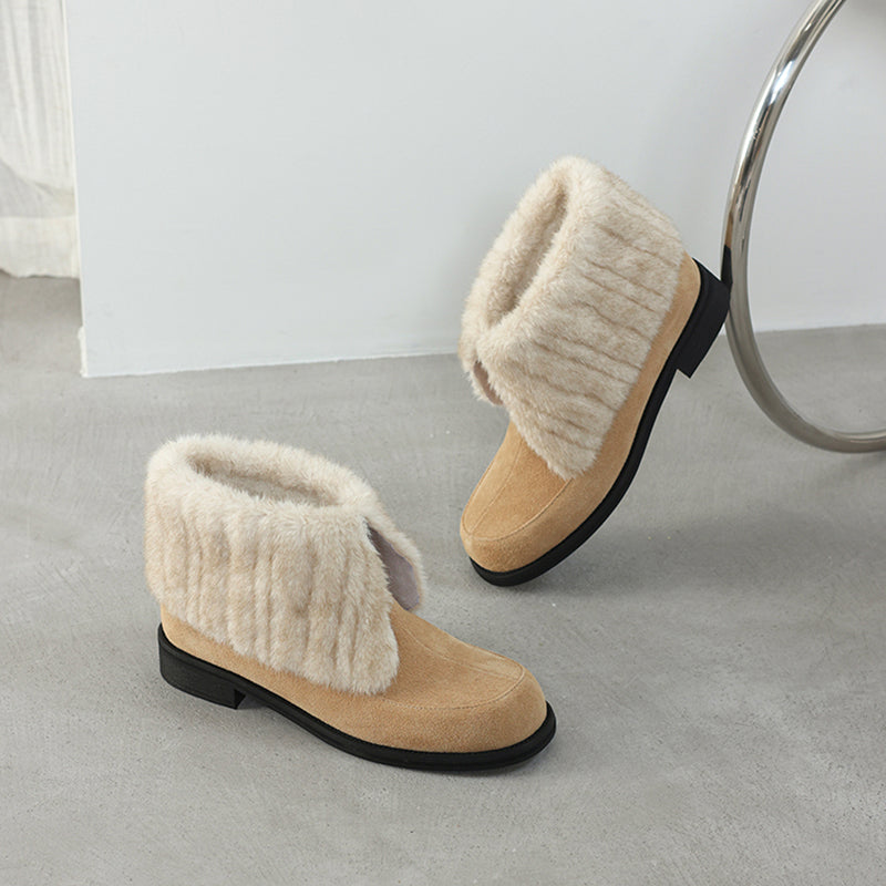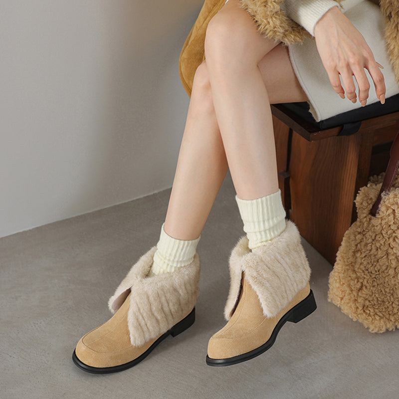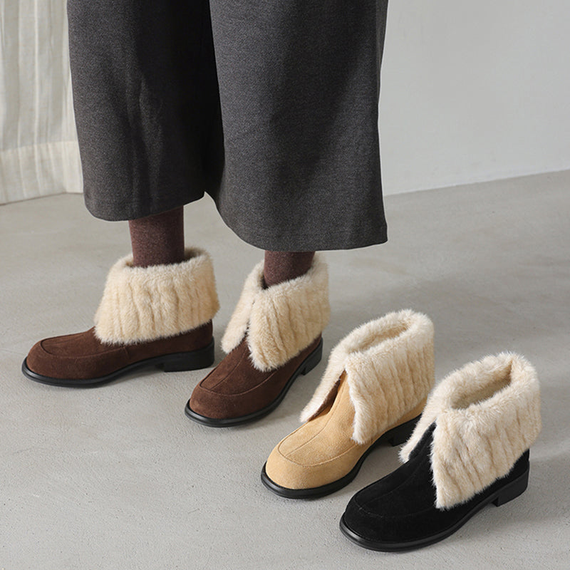 Shaggy Furry Suede Winter Boots Casual Short Boots with Long Plush Lining in Black/Apricot/Brown