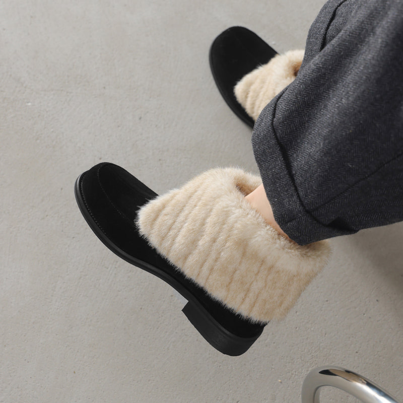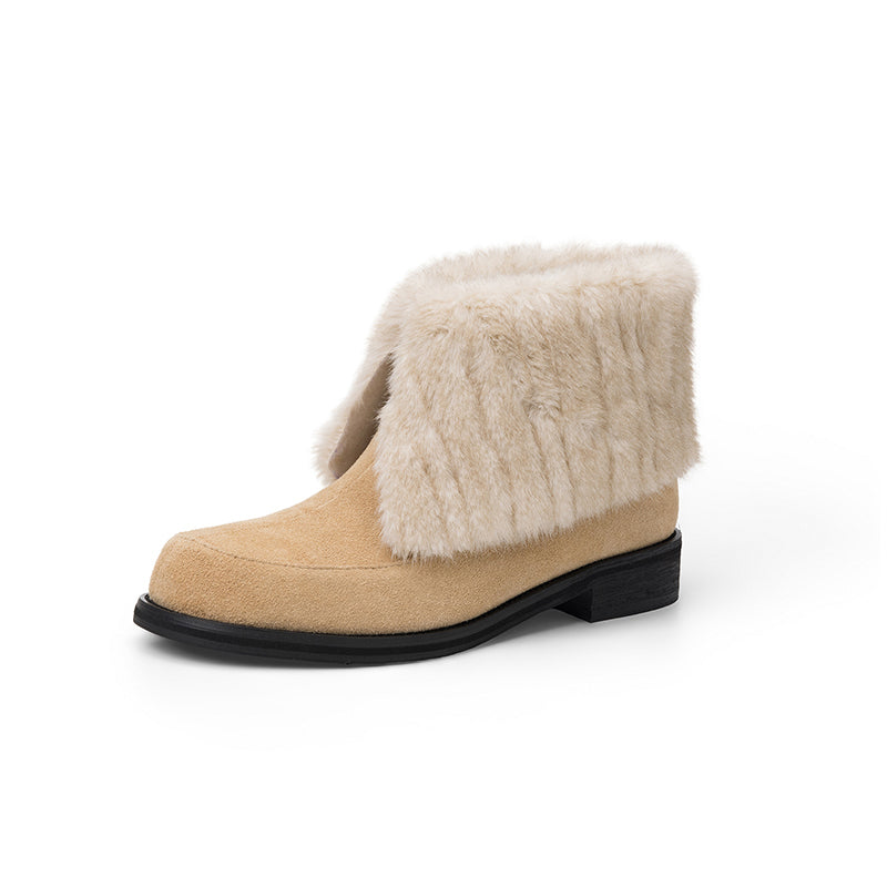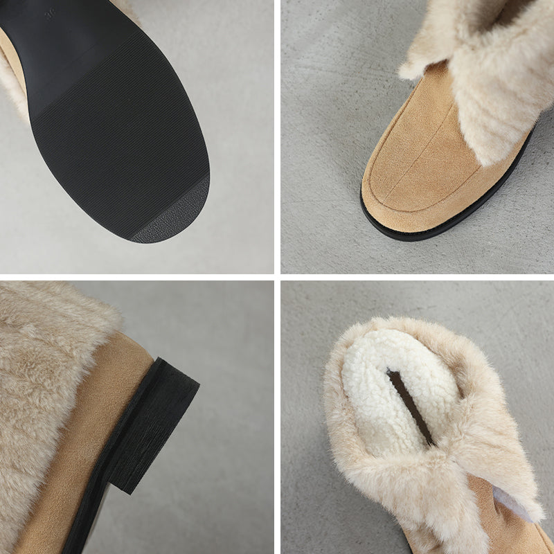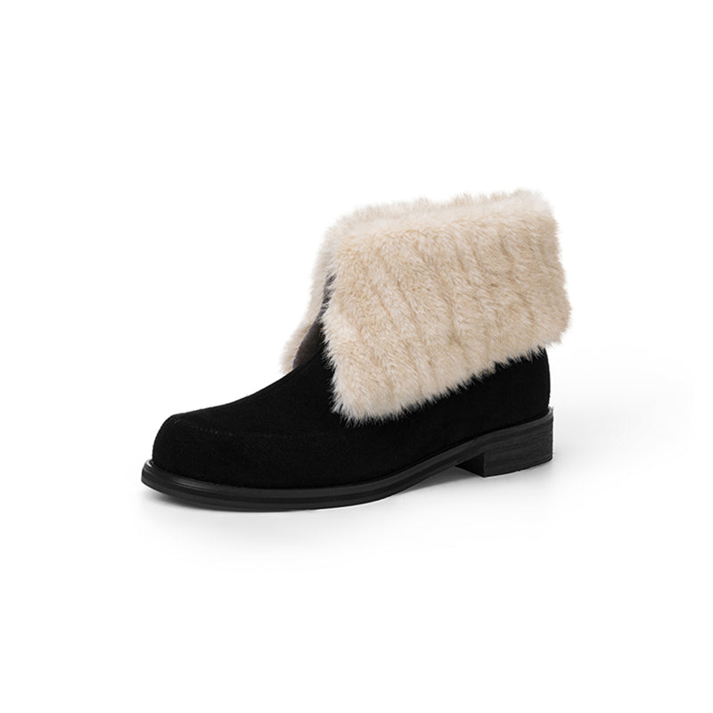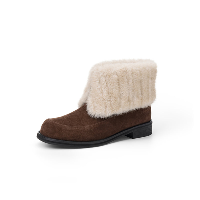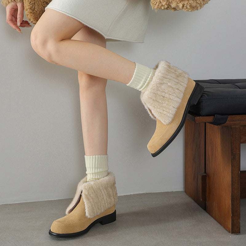 Shaggy Furry Suede Winter Boots Casual Short Boots with Long Plush Lining in Black/Apricot/Brown