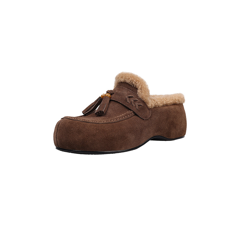 여성용 가죽 슬리퍼 블랙/브라운 블록 힐 뮬