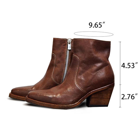 블랙/커피 여성용 클래식 말 가죽 웨스턴 부츠 가죽 밑창 짧은 부츠