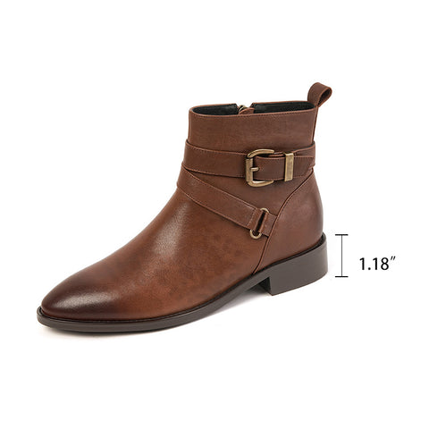 클래식 여성용 가죽 첼시 부츠 버클 장식 및 블랙/브라운 사이드 지퍼
