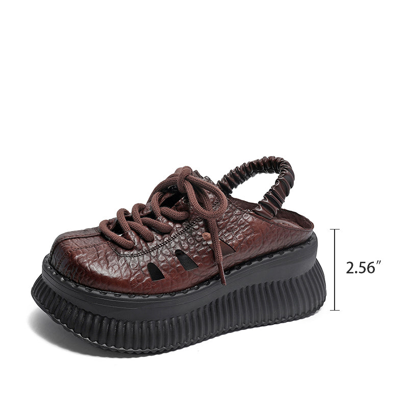 가죽 스트랩 샌들 라운드 토 레트로 핸드메이드 플랫폼 글래디에이터 샌들(브라운/블랙)