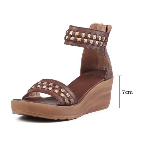 핸드메이드 정품 가죽 플랫폼 샌들 리벳 커피/브라운