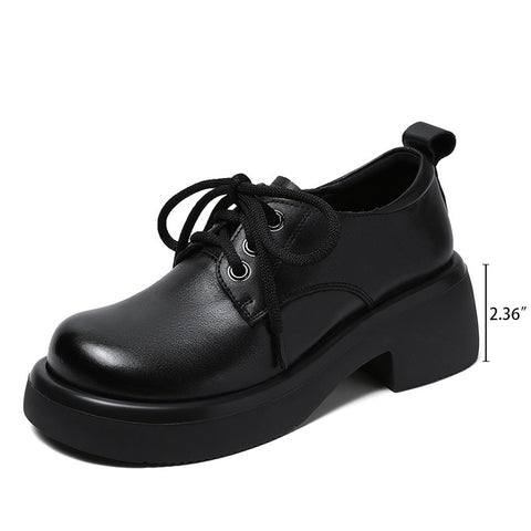 라운드 발가락 블록 힐 옥스포드 슈즈 레트로 레이스 업 가죽 슈즈 블랙/브라운