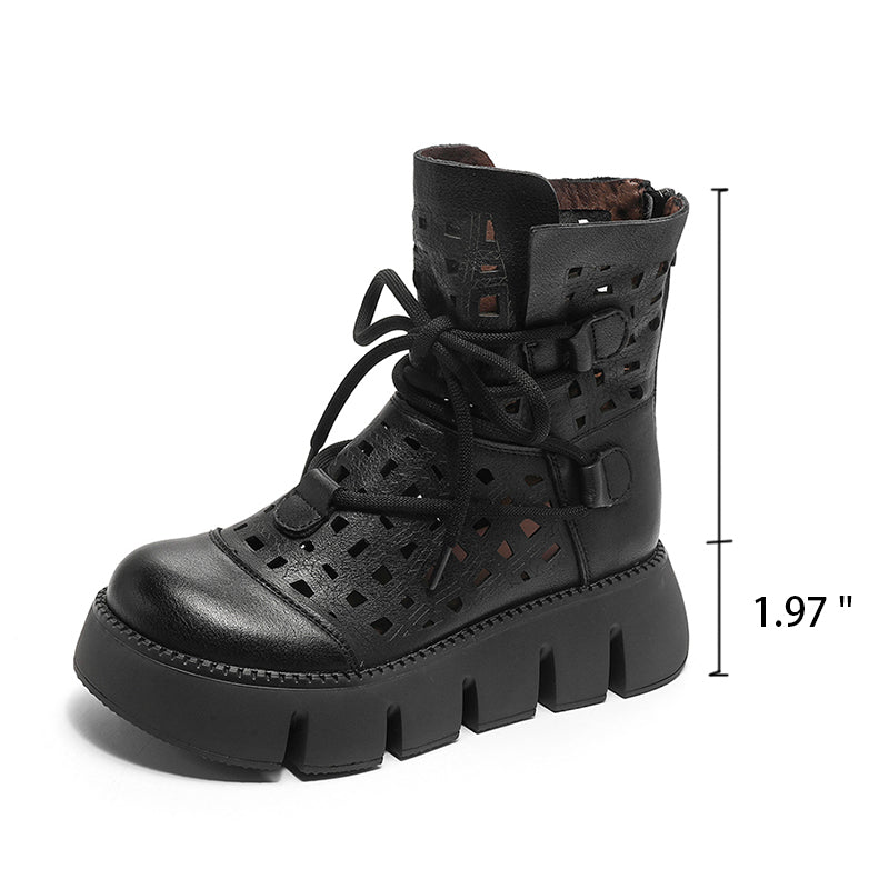 여성용 핸드메이드 컷아웃 가죽 앵클 부츠 여름 레이스업 베이지/블랙/커피
