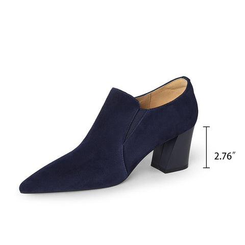 여성용 핸드메이드 스웨이드 가죽 레트로 포인트 토 블록 힐 펌프스 블루/살구색