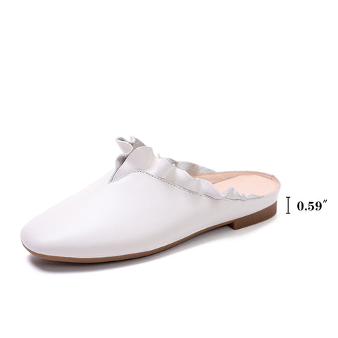 여성용 가죽 슬리퍼 로퍼 샌들 둥근 발가락 경량 플랫 슈즈 로즈 레드/카키/오프 화이트/블랙/오렌지/블루