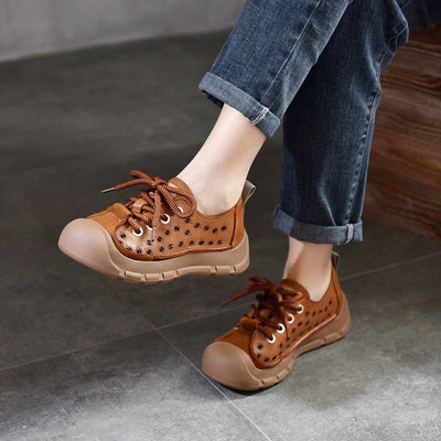 여성용 가죽 로우탑 여행용 천공 플랫폼 스니커즈(베이지/퍼플/그...